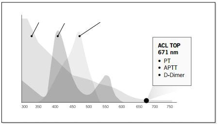图 1:ACL TOP 系统在 671nm 处进行检测,使得许多重要的和常规的检测项目都在干扰范围之外。