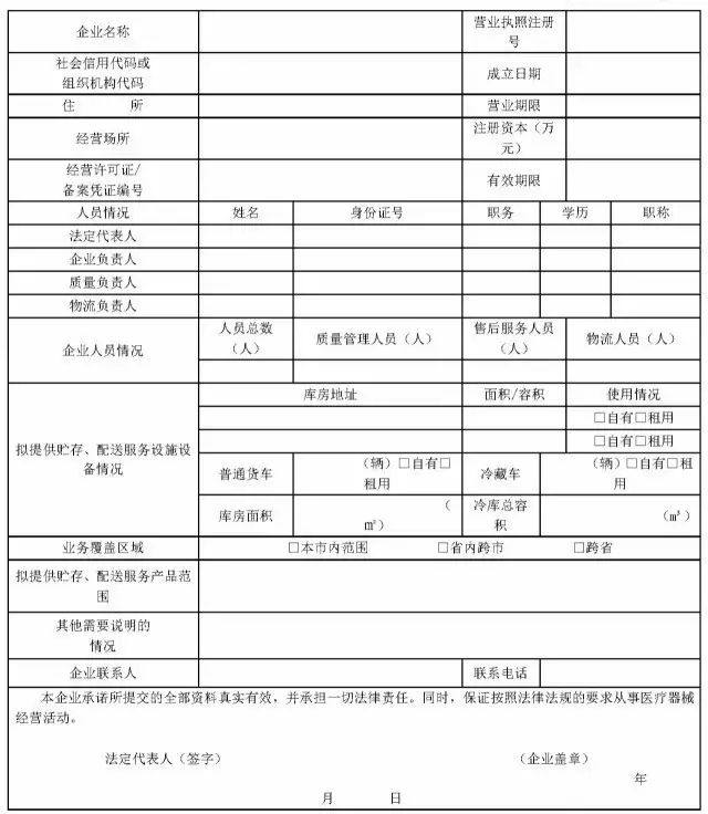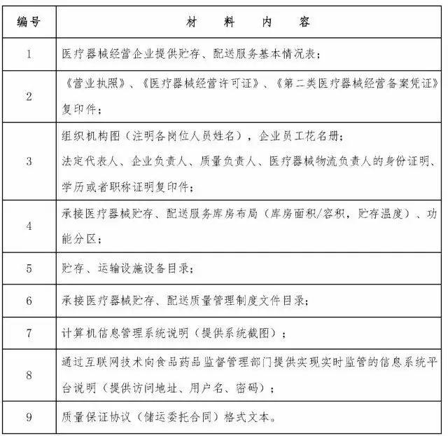 医疗器械经营企业提供贮存、配送服务申报材料目录